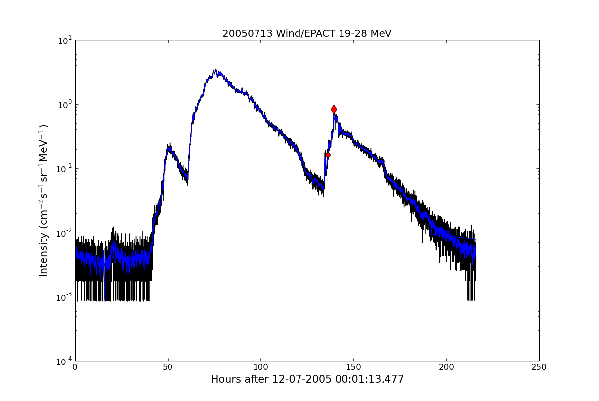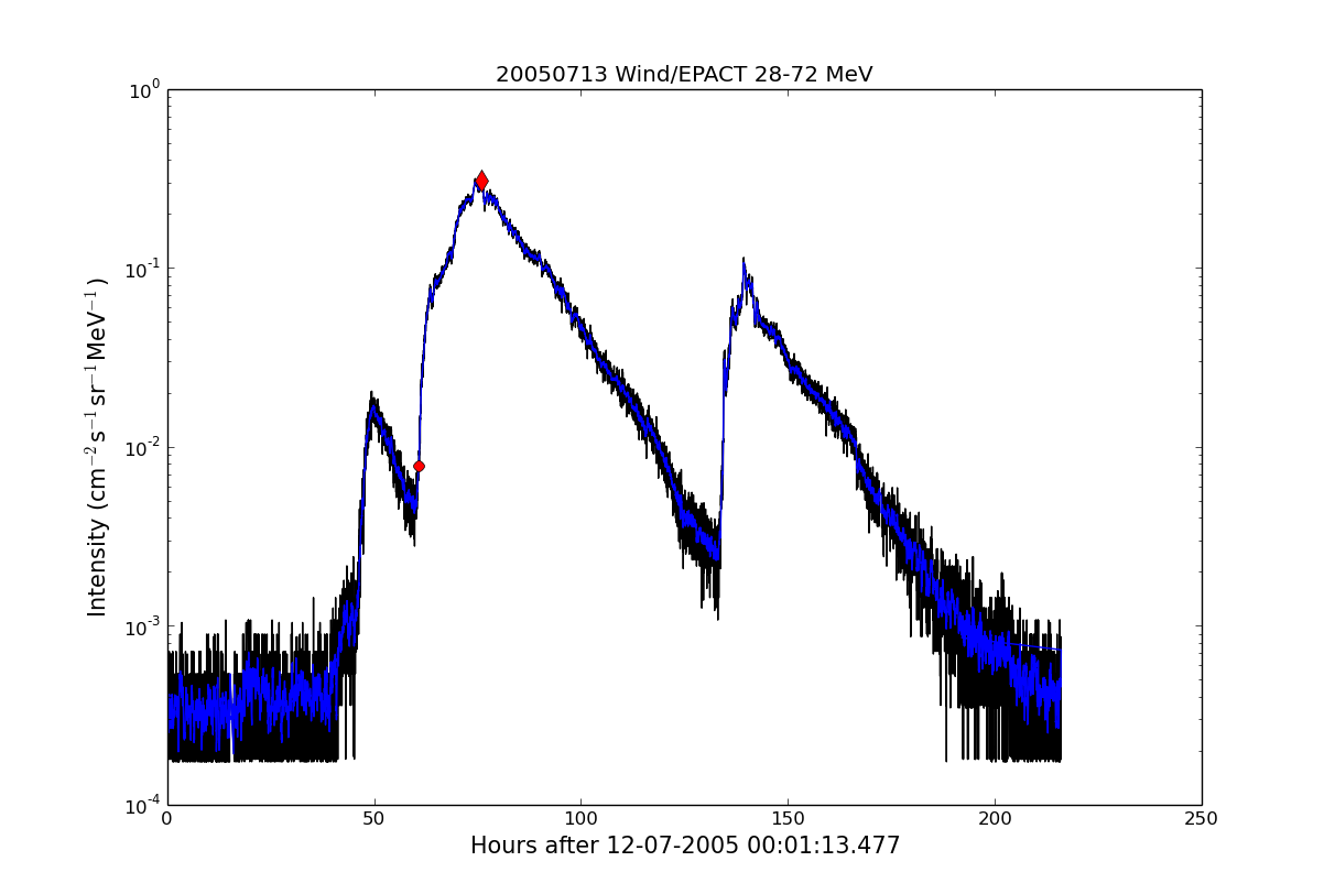 | 2005-07-13 | 17:47 | 03:11nd | 0.2097/2626 | 0.0165/126 | M5.0/14:01/N11W90 | 14:30/1423/360 | |